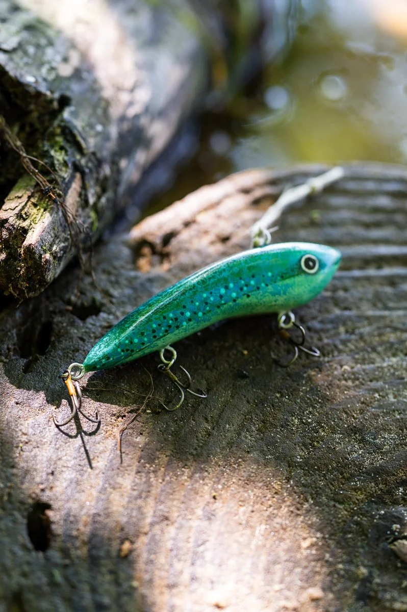 Every wooden fish in the Lure Collection begins its journey as a unique species, expertly shaped and hand-sanded by artisans at Spalted Workbench. The fish then travel to Sharing Meraki where we add character through color and whimsy. Hand painted and detailed fish are dipped in resin to resemble vintage lures. Each ornamental lure has a distinct name and personality, making them perfect for collecting or gift-giving.